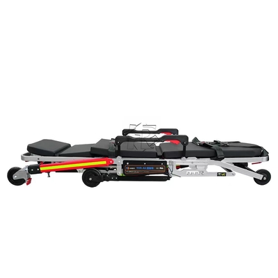 Questo carrello barella, principalmente con un corpo in lega di alluminio e raccordi in lega di alluminio pressofuso, è leggero, resistente, facile da disinfettare, adatto ai centri di emergenza ospedalieri per il trasferimento dei feriti. Ha cuscini in spugna PVC (impermeabili, ignifughi, anticorrosivi), uno schienale regolabile fino a 75°, una struttura delle gambe pieghevole (controllata dalla maniglia destra), braccioli in plastica di polietilene e ruote resistenti con bordi in gomma. Deve essere bloccato con i dispositivi di fissaggio dell'ambulanza dopo l'imbarco. Dotato di due cinghie di sicurezza, può essere ripiegato in una sedia con regolazione dell'angolo a 5 livelli, ideale per il trasferimento di pazienti in spazi limitati come ascensori ospedalieri, ambulanze, aerei e ambulanze stradali urbane.